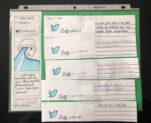 When the class does this activity—which takes about 45 minutes to set up the first time—Fletcher has them respond to prompts about their current mood or new things happening in their lives, and then their followers respond.